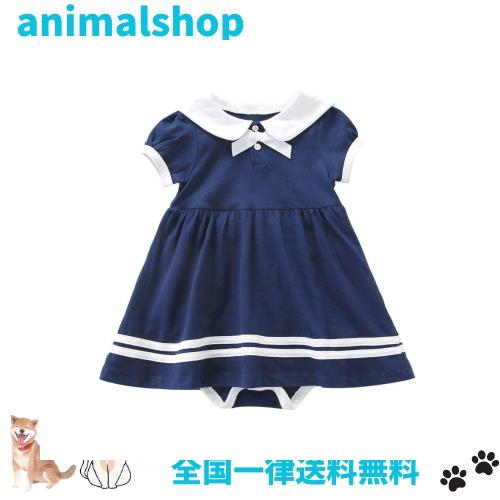 [Baby Nest] 夏 ベビー服 スカート付き 半袖ロンパース 赤ちゃん ワンピース 女の子 セーラー風 水玉 コットン100% ネビー 6-9ヶ月