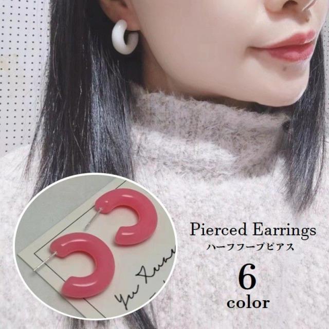 ハーフフープピアス C型 レディース アクセサリー 耳飾り 女性用 大きめ キャンディカラー カジュアル 可愛い おしゃれ 服飾