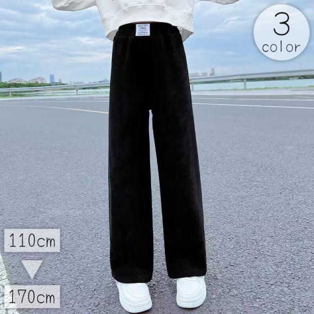 ロングパンツ ワイドパンツ キッズ ジュニア レディース 女の子 女性 ボトムス 長ズボン 薄手 ウエストゴム 無地 単色 シン