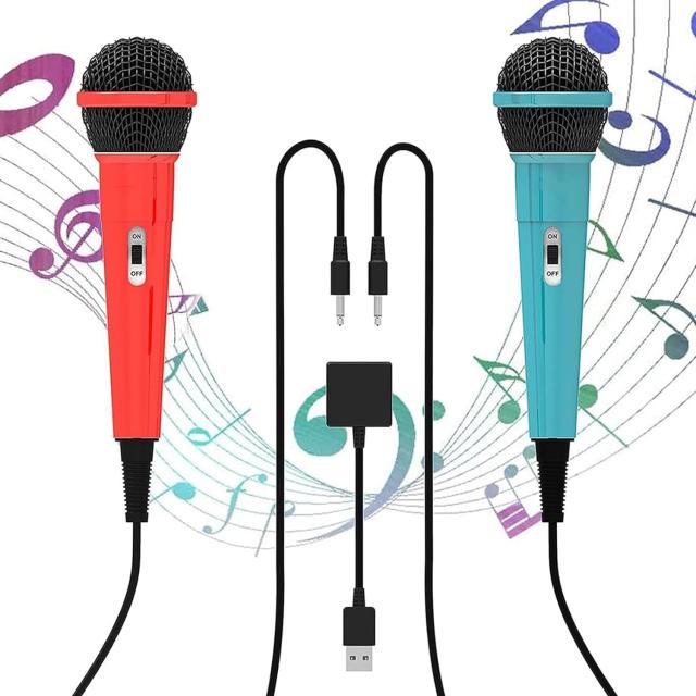 Switch用 マイク【2024最新改良・2本セット】Switch用 カラオケマイク ニンテンドー スイッチ用 マイク 有線マイク 2.0USB 2人同時に歌える 軽量 単一指向性 低ノイズ 接続簡単 3mの強靭なケーブル Switch/Switch 有機ELモデル/PS5/PS4/PC/XBOX ONE対応(レッド&ブルー)