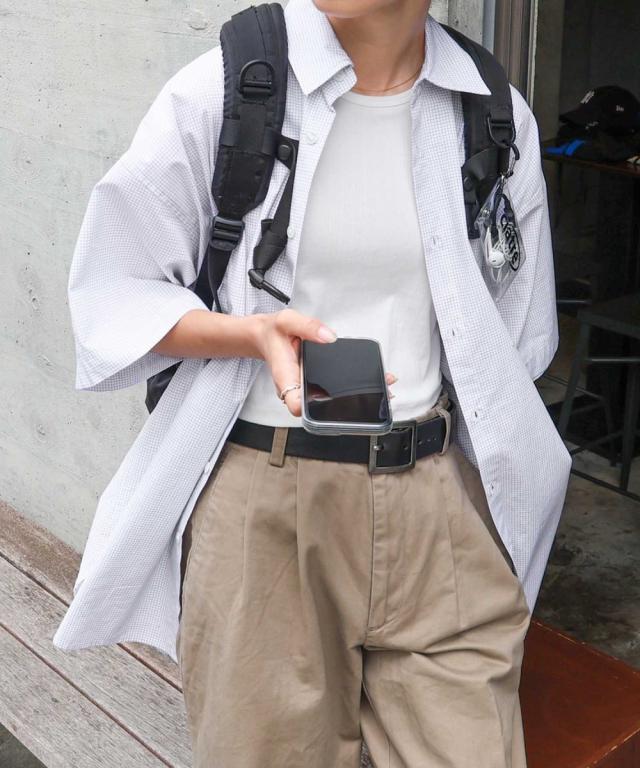 ANME エンブロイダリー ロゴ オーバーサイズ 半袖 チェック シャツ ANME アンメ