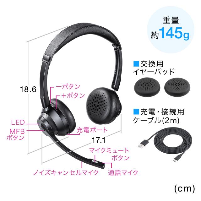 ■セット内容:ヘッドセット本体、充電/有線用USBケーブル、イヤーパッド(交換用)×2個