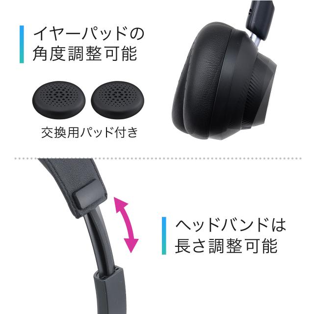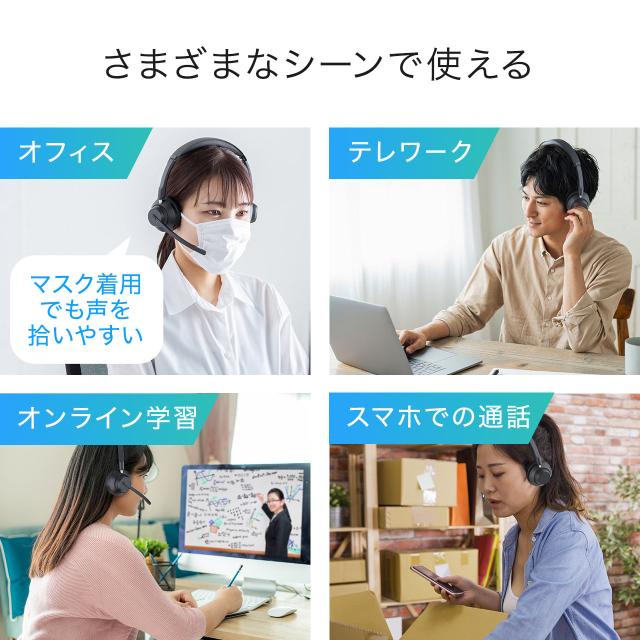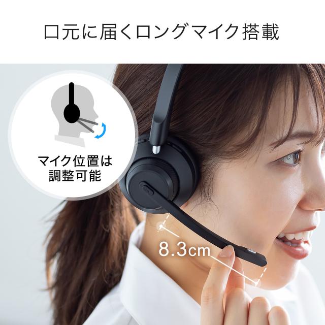 Bluetoothヘッドセット デュアルマイクノイズキャンセル 両耳タイプ 無線 有線 25時間連続通話 コールセンター 法人 テレワーク 配信 ワイヤレス[400-BTSH026BK]