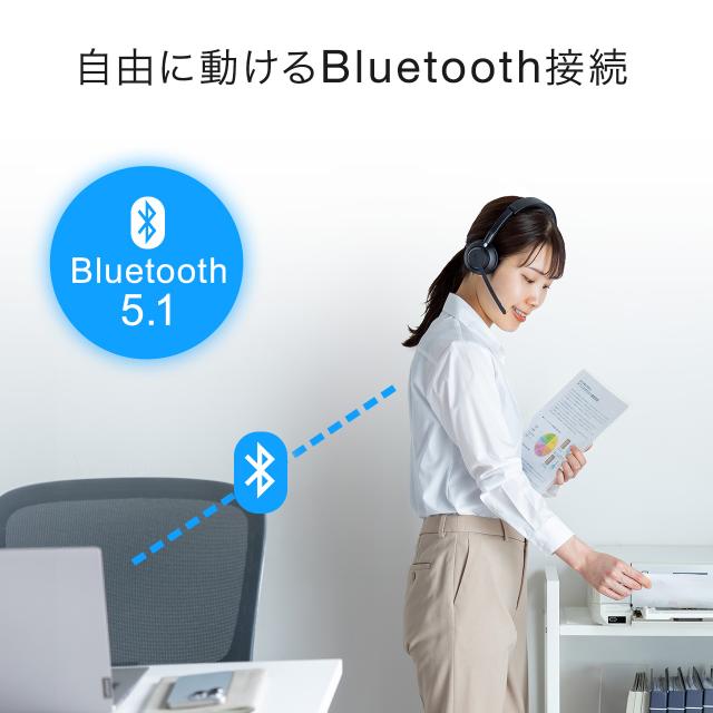 ●Bluetooth接続なのでヘッドセットを外すことなく、資料などを取りに動き回ることができます。