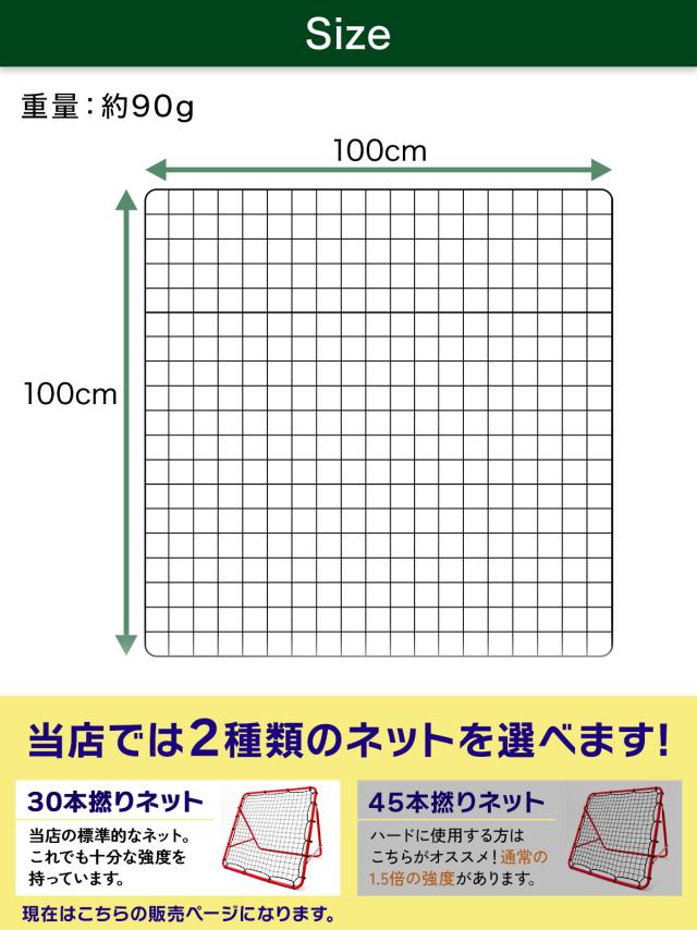 【1M×1Mリバウンドネット用/30撚り網タイプ】こちらの商品は1M×1Mリバウンドネットの《30撚り網タイプ》です。1M×1Mリバウンドネット以外には使用できませんので、お間違えの無いようお気を付け下さい。