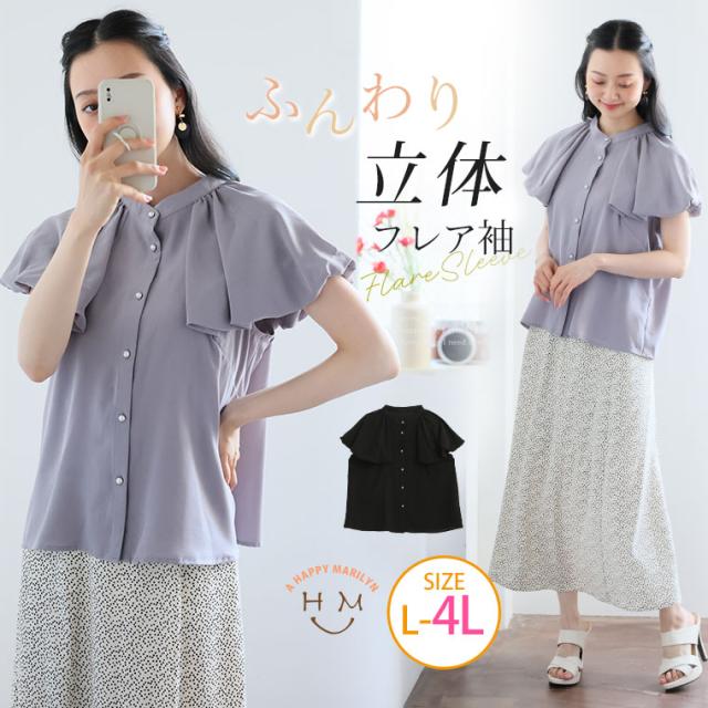 新作 大きいサイズ レディース ブラウス | フレア風 バルーン袖ブラウス [861296] LL 3L 4L1