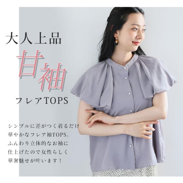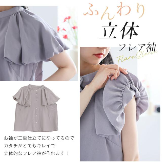 フレア風 立体バルーン袖ブラウス