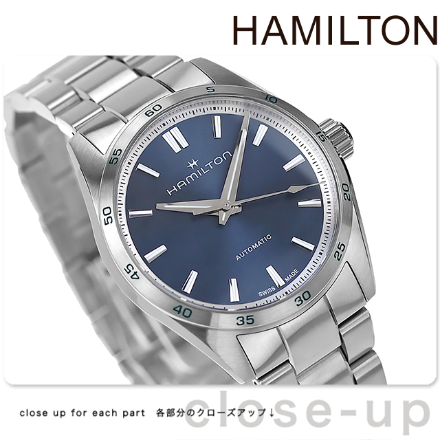 3年保証キャンペーン ハミルトン ジャズマスター パフォーマー オート 34mm スイス製 メンズ レディース 腕時計 H36115140 HAMILTON JAZZMASTER Performer Auto アナログ ネイビー ◆HAMILTON(ハミルトン)はアメリカ発祥の老舗ブランドです。創業翌年に誕生した懐中時計「ブロードウェイ・リミテッド」は、他の時計よりも正確に時を刻むことから鉄道用時計として採用されました。その後も航空用時計や軍用時計として採用されるなど、品質の高さと流行にながされない独自のデザインが世界中の人々に支持されています。 機能性とスタイルの両方を求める方にぴったりな「ジャズマスター パフォーマー」は、パワフルでスポーツシックな外観が特徴です。標準持続時間80時間のH-10自動巻きムーブメントが駆動する「ジャズマスター パフォーマー オート」は、誕生日や記念日のプレゼントにもおすすめです。 機械式腕時計
