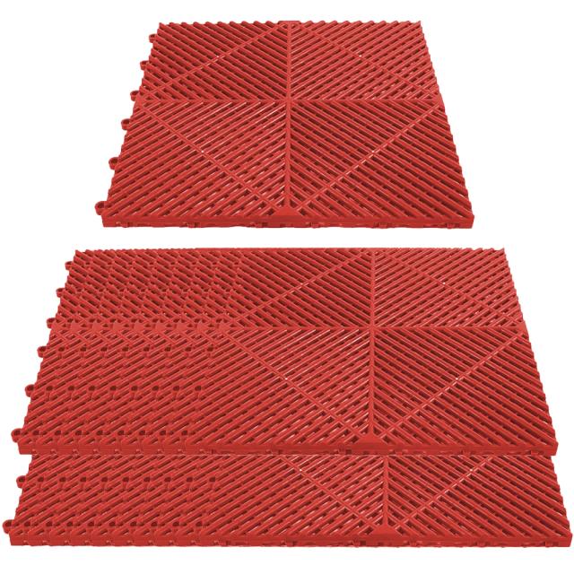 ガレージタイル ガレージマット 20枚セット レッド 赤 マットのみ はめ込み 置き敷き バイク 車 自転車 駐車場 屋外 屋内 メッシュ 通気性 軽量 ショールーム 倉庫 テラス イベント フロアタイル ジョイント フロアデッキ エクステリア ガーデン