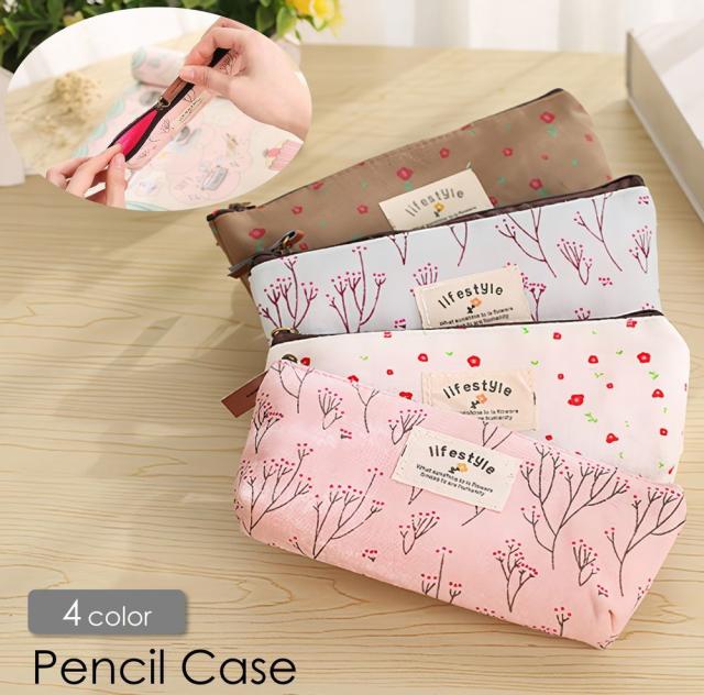 ペンケース 筆箱 ふでばこ 筆入れ キャンバス 文房具 文具 ステーショナリー レディース 女性 花柄 フラワー 植物 シンプル