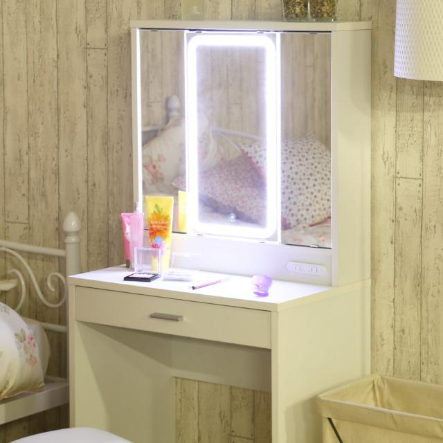 LEDライトがついたシンプルなデザインのドレッサーです。ライトをつけて使用することで、天候やお部屋の照明に左右されずにメイクを楽しめます。
