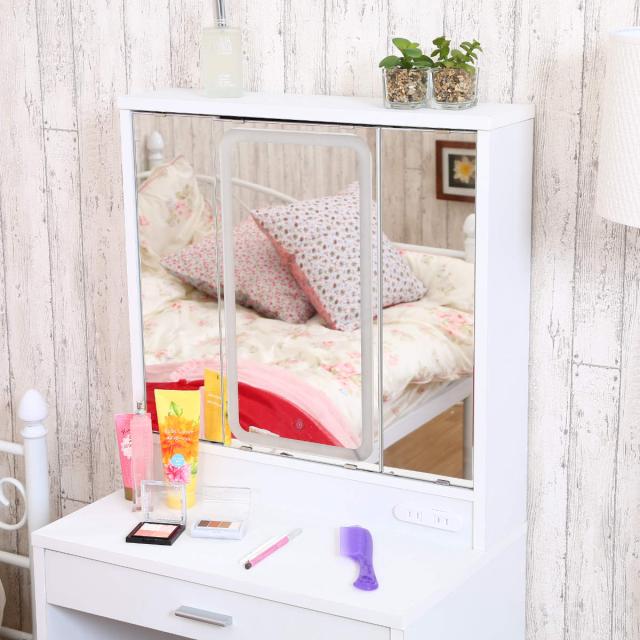 LDEライト付きメイクがしやすい三面鏡ドレッサー