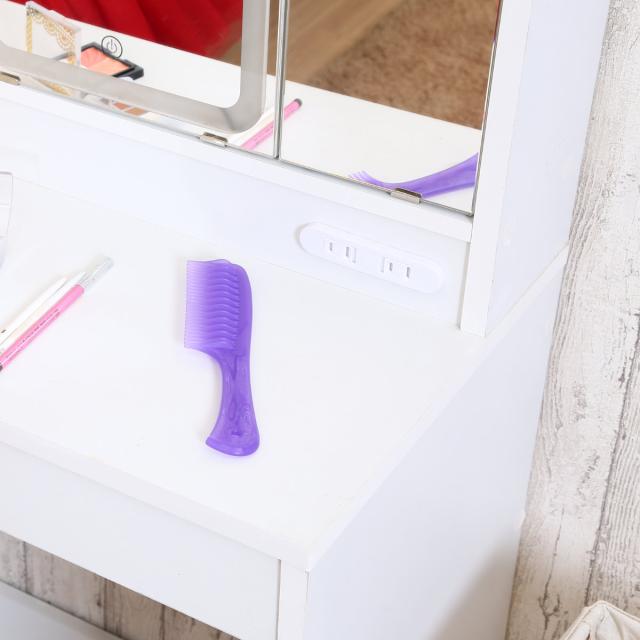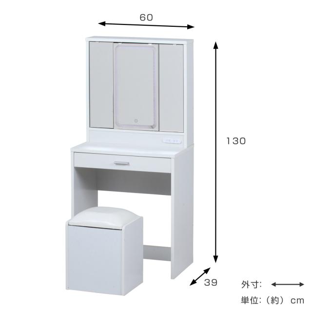 ドレッサー 三面鏡 鏡台 収納 LEDライト付 ( スツール付 コンセント 鏡面裏収納 引き出し ホワイト 白 三面 鏡 メイク台 照明 女優 ライト LEDミラー ミラー )