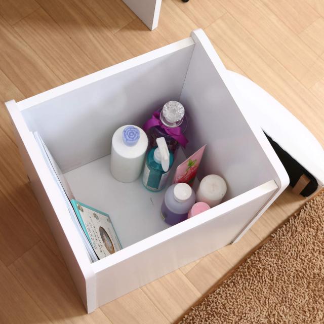 スツールはドレッサーに収まるため、邪魔になりません。スツールの中にも収納スペースがあるので高さのあるものやあまり使わないものを収納できます。