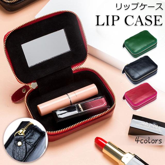 ポイント超超祭 リップケース ミラー付き 口紅ケース 収納ケース 鏡付き 携帯 コンパクト 化粧品収納 小物収納 ミニメイクポーチ 化粧ケース レザー スタッズ キル