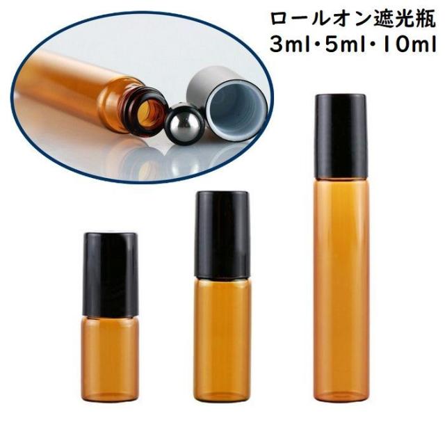 遮光瓶 ロールオンボトル ガラス製 保存容器 アロマオイル エッセンシャルオイル 精油小分け 茶色 小瓶 容量3/5/10ml