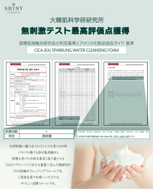 SHINY CICAスパークリングウォータークレンジングフォームは、トラ草と呼ばれる済州スパークリングウォーターとセンテラの優れた成分のみでつくられ、あらゆる肌タイプの方の顔や体を安全にクレンジングします。