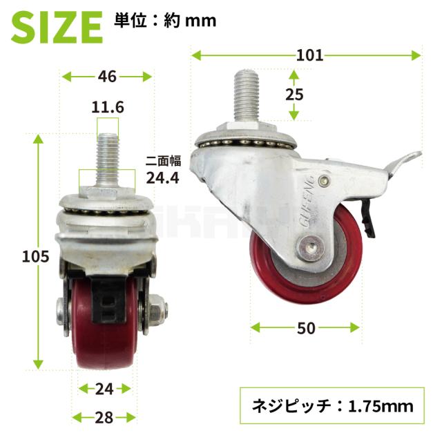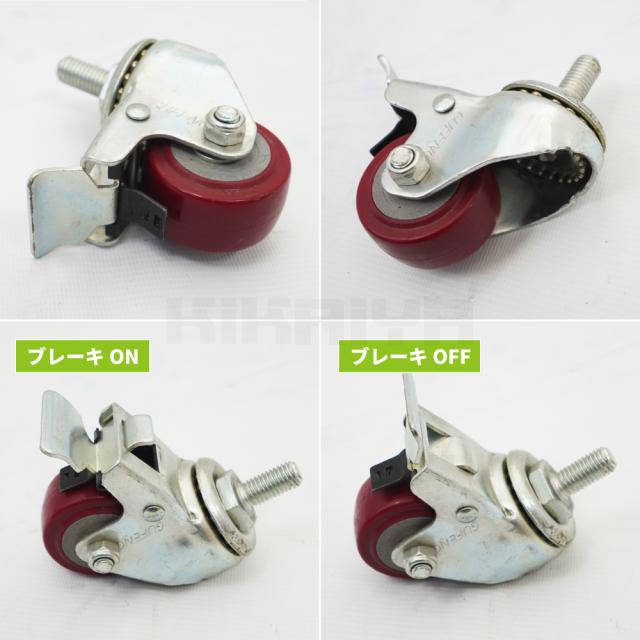自在キャスター ネジ式 ブレーキ付 ウレタン車輪 2個セット 50mm ねじ込み式 ボルト M12 ノーパンクタイヤ DIY 台車 キャスター KIKAIYA