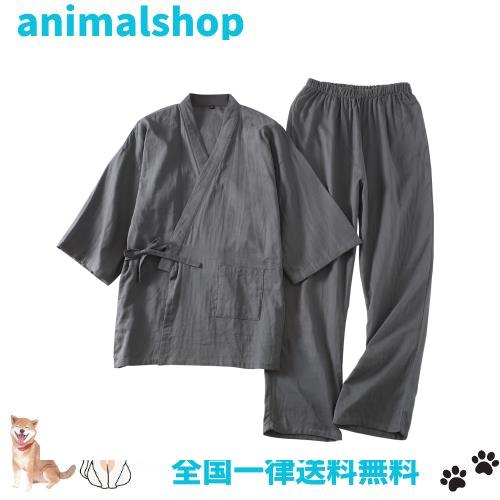 [Comfort U] 作務衣 メンズ 浴衣 甚平 寝間着 綿100% 二重 ガーゼ パジャマ 男性用 紳士甚平 7分袖 前開き 甚平セット 通気性 吸汗 和服