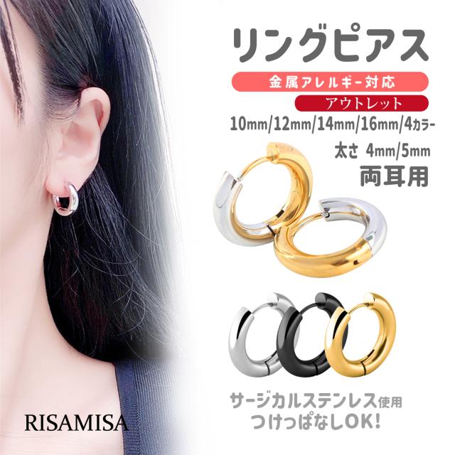リングピアス 両耳 金属アレルギー 対応 シンプル プレーン 太い 大きい フープピアス サージカルステンレス ワンタッチ アウトレット