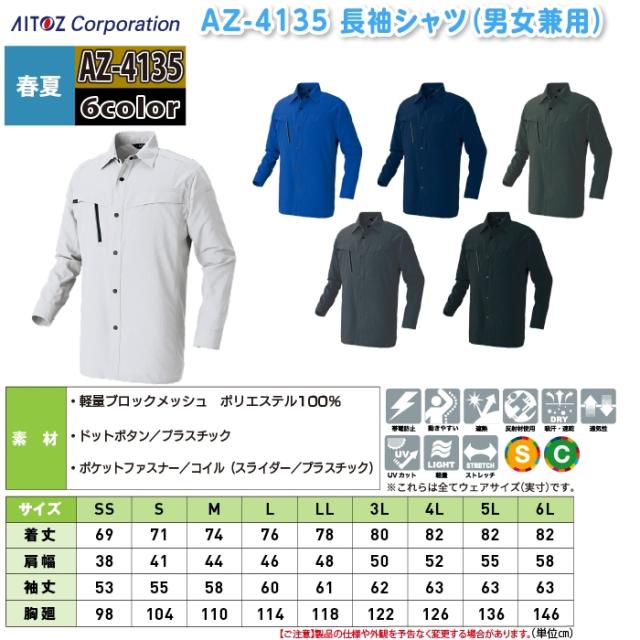 アイトス 作業服 作業着 Aitoz 春夏用 Aitoz AZ-4135 長袖シャツ(男女兼用) 5L