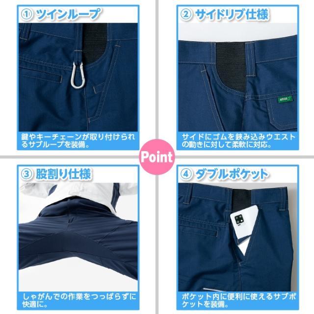 ◇機能:帯電防止・JIS T8118適合・エコ商品・軽量・ストレッチ・サイドリブ仕様・ツインループ・ダブルポケット・股割り仕様