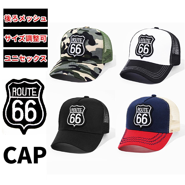 ROUTE66 後ろメッシュキャップ ベースボール ルート66 キャップ シンプル サイズ調節可能 メンズ レディース 帽子 ユニセックス 迷彩 アーミー 通気性 熱中症対策