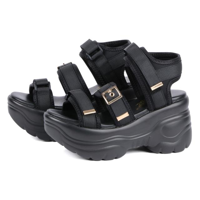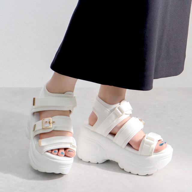 サンダル レディース 厚底 スポサン 8.5cmヒール ハイヒール ベルクロ 歩きやすい No.1680 22.5-25cm 黒 白 LOVEHUNTER ラブハンター
