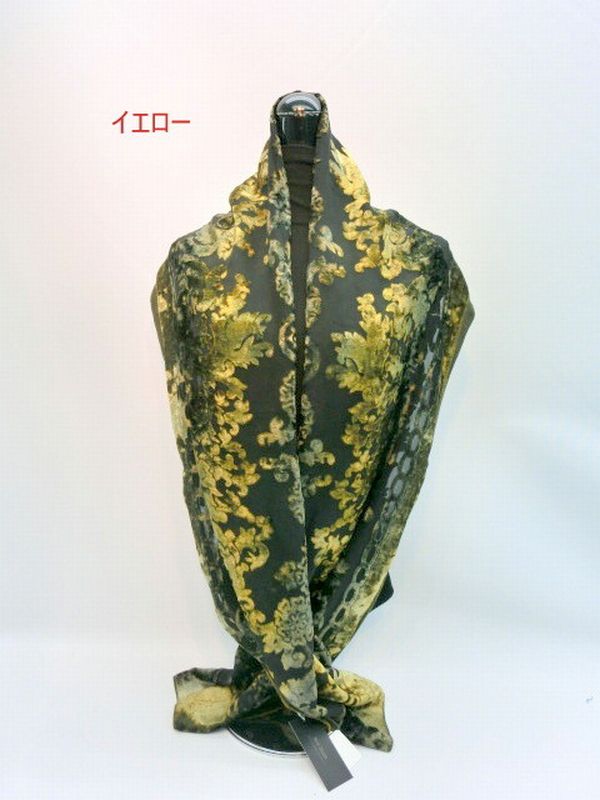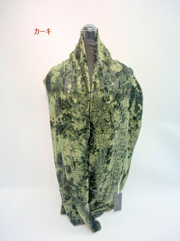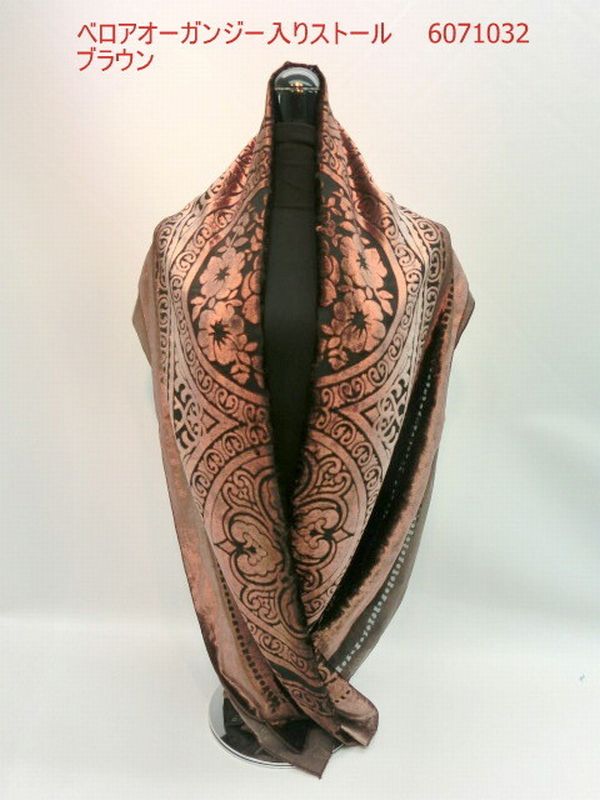 秋冬のオシャレな素材のオーガンジー生地に、光沢のあるベロア生地を乗せたストールです。オーガンジーの透け感&ベロアの光沢がゴージャス感を演出します。