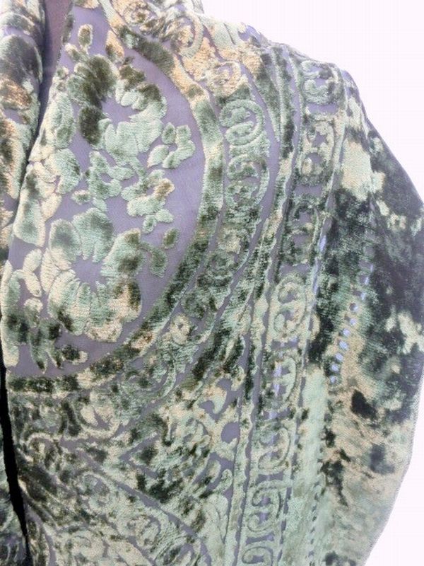 | 秋冬のオシャレな素材のオーガンジー生地に、光沢のあるベロア生地を乗せたストールです。オーガンジーの透け感&ベロアの光沢がゴージャス感を演出します。 和装、洋装どちらでもお使い頂けます。 |