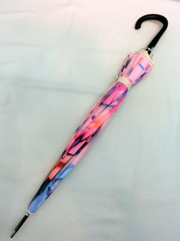 | 人気のサンフラワー骨使用・立体感のある花柄が華やかな、ペーパーアート柄1枚張りジャンプ雨傘です。 枝分かれ式の16本骨サンフラワー骨はその名の通り花のようで内側もオシャレです。 一枚張りだから雨漏りの心配を軽減し、一枚張りだからできる柄の途切れないデザイン性の高い雨傘です。 |