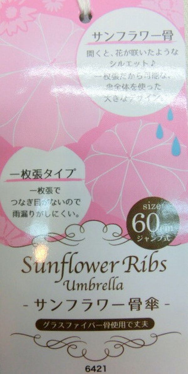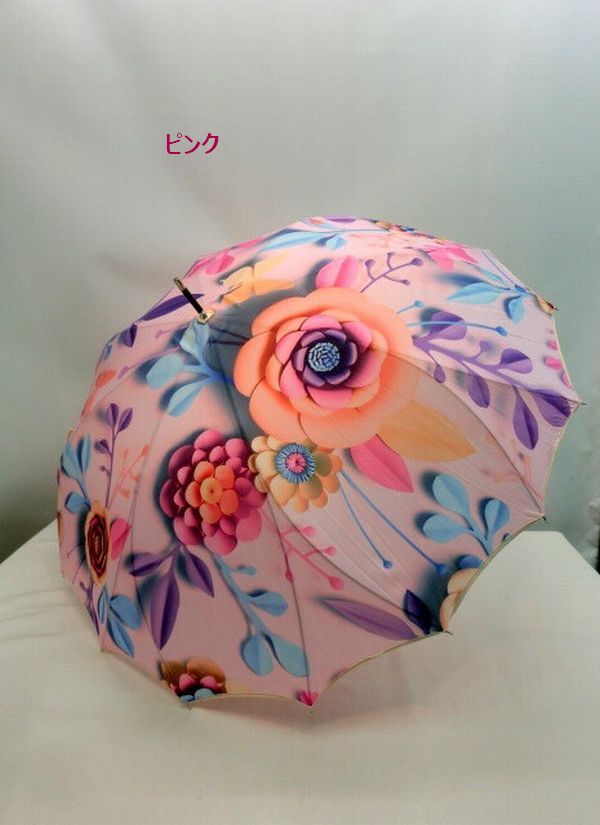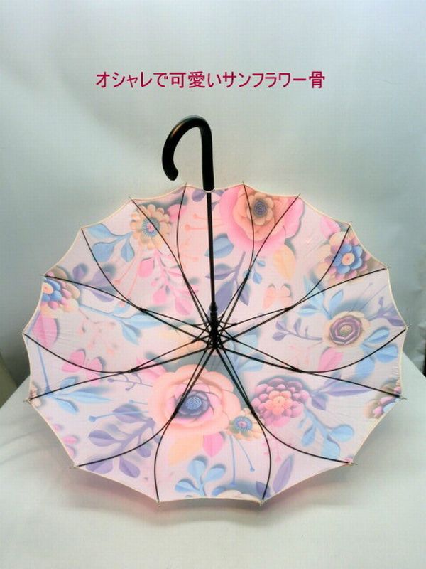 人気のサンフラワー骨使用・立体感のある花柄が華やかな、ペーパーアート柄1枚張りジャンプ雨傘です。