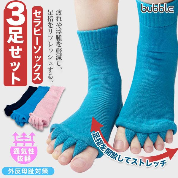 セラピーソックス【3足セット】 外反母趾 スリーピングソックス 予防 足指 広げるむくみ スリーピング ルームソックス 冷え対策 就寝用 5本指 足指全開 ネイル 足指サポーター セパレーター 男女兼用
