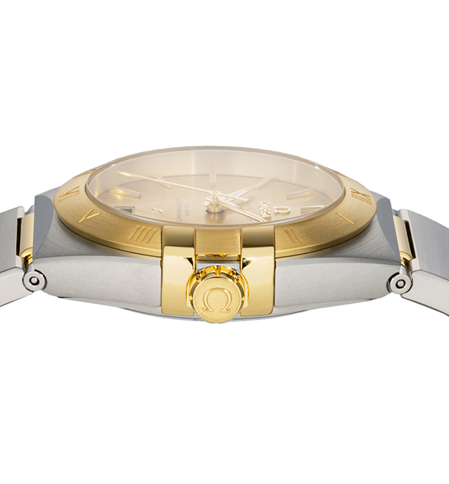 5年保証キャンペーン オメガ コンステレーション 36mm スイス製 メンズ 腕時計 131.20.36.20.08.001 OMEGA CONSTELLATION アナログ イエロー イエローゴールド ◆オメガは1848年、ルイ・ブランによってスイスにて設立された高級腕時計ブランドです。1894年に発表した懐中時計のムーブメント、「Ω(オメガ/達成と極致の意)」という言葉を正式な社名として採用しました。 「コンステレーション」コレクションは有名な「爪」と印象的なダイアルが特徴です。 この36mmのステンレススティール&18Kイエローゴールド製モデルは、ローマ数字が刻印されたベゼルが印象的で、サンブラッシュ仕上げのダイアルには、6時位置に日付窓があります。針、オメガロゴ、コンステレーションの「星」、インデックスにはいずれも18Kイエローゴールドが使用されています。腕元にエレガントな雰囲気を演出します。 機械式腕時計