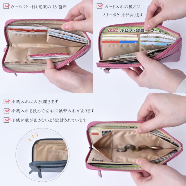 カードポケットは充実の16箇所にあり、日常使いにピッタリな長財布です。