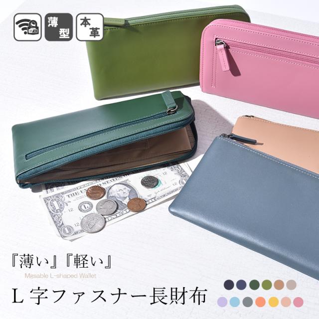 【千円OFFクーポン対象】 L字ファスナー 長財布 薄型 レディース メンズ 男女兼用 本革 スリム 軽量 春財布 シンプル L字 薄型財布 大容量 グレージュ グリーン 薄い レザー 軽い YKK 多収納 きれいめ 牛革 サブ 大人 主婦 女性 男性 人気 金運 母の日 ギフト 送料無料