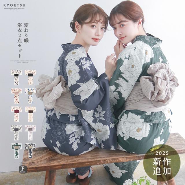浴衣 セット レディース 【 浴衣セット 2点 レトロ E 】 レディース浴衣 兵児帯 女性 yukata ゆかた ユカタ 帯 しわ兵児帯 きなり くすみ 可愛い おしゃれ 10代 20代 30代 40代 フリーサイズ 高校生 大学生(rg)