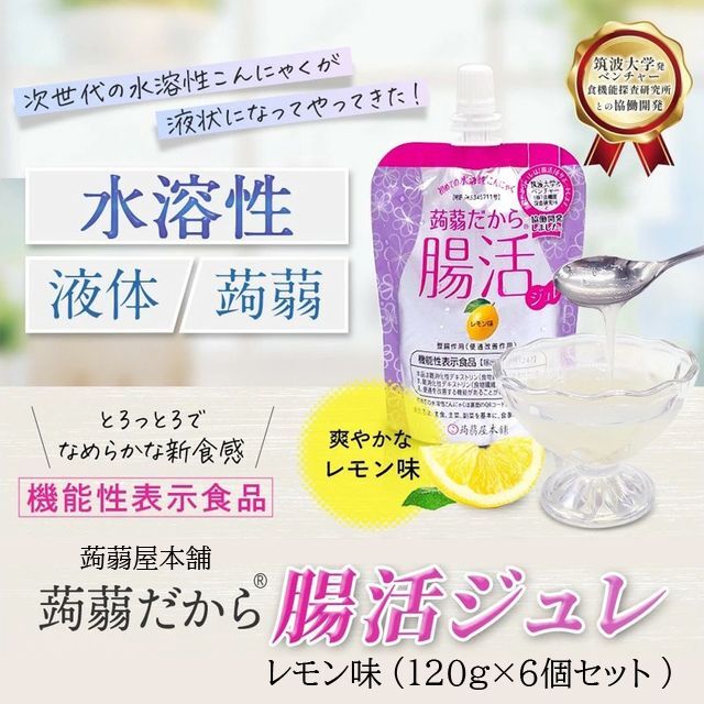 機能性表示食品「蒟蒻屋本舗 蒟蒻だから腸活ジュレ レモン味」120gx6個(1箱) (水に溶けるこんにゃく 飲めるこんにゃく)