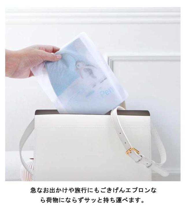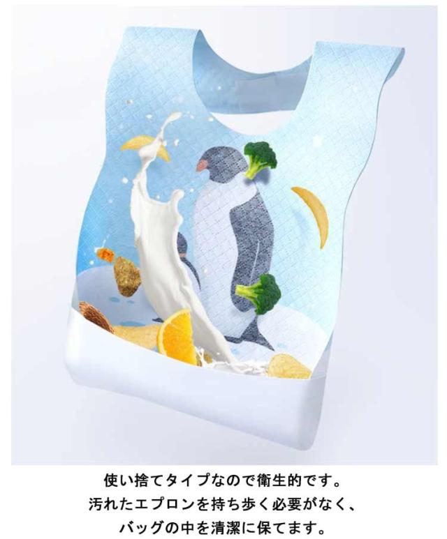 | 個包装タイプ!使い捨て食事エプロンセット 立体ワイドポケットが食べこぼしをしっかりキャッチ! 使い捨てタイプなので衛生的です。汚れたエプロンを持ち歩く必要がなく、バッグの中を清潔に保てます。 首回りは両面テープで貼り付けるため、お食事の途中にほどけ落ちる心配がありません。 お家でのお食事はもちろん、外出先でも後片付けがとっても楽ちん♪ 折り畳みやすく、小さく軽いのでバッグに入れての持ち歩きに最適なグッズです。 急なお出かけや旅行にもごきげんエプロンなら荷物にならずサッと持ち運べます。 面倒なエプロンの洗濯からも解放され家事ストレスも軽減します。 | |