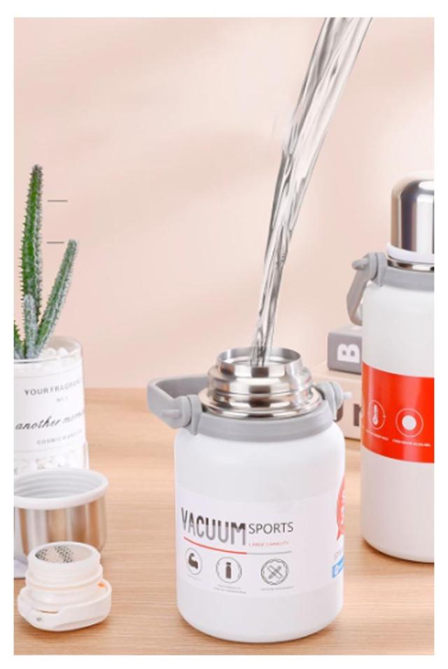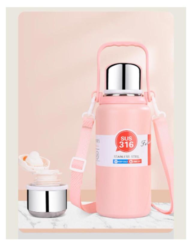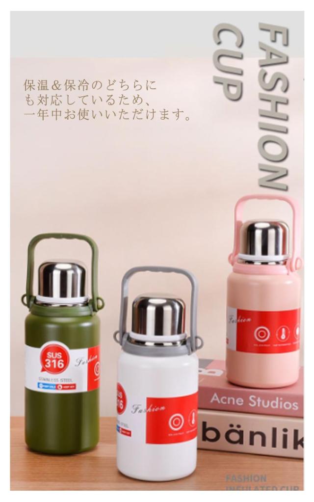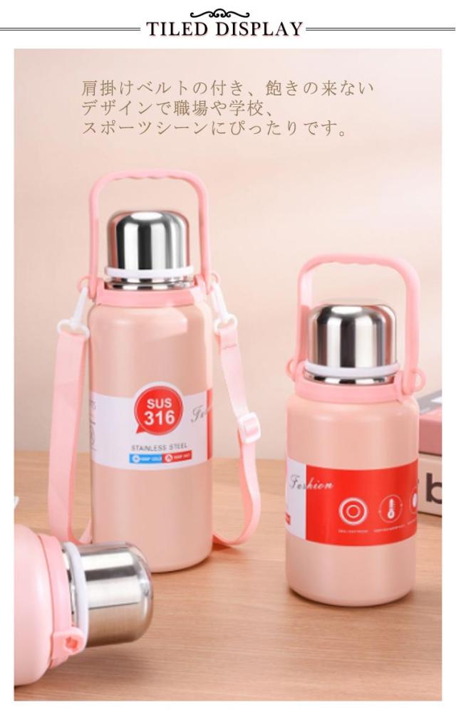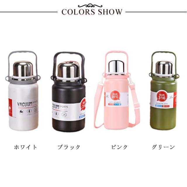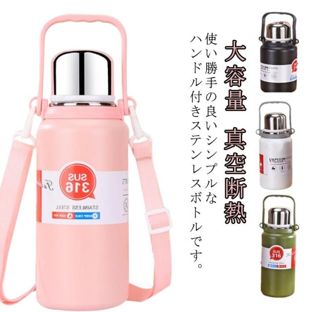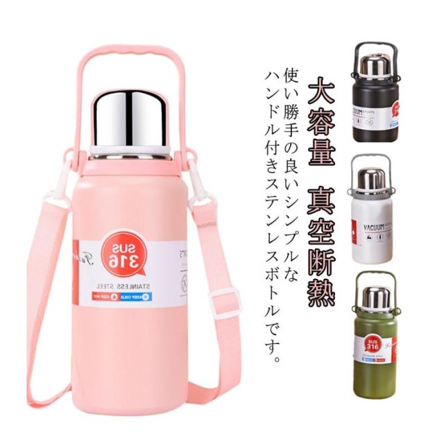 大人 水筒 子供 コップ付き 水筒 ショルダーストラップ付き 大容量 マグボトル ハンドル 魔法瓶 ハンドル付 持ち手付 真空断熱 保温 保冷 600ML 800ML 1000ML 1200ML