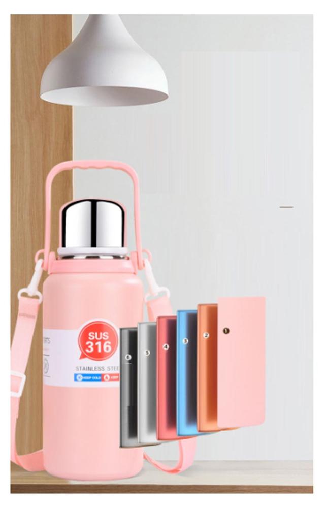 | 六層保温!使い勝手の良いシンプルなハンドル付きステンレスボトルです。 肩掛けベルトの付き、飽きの来ないデザインで職場や学校、スポーツシーンにぴったりです。 保温&保冷のどちらにも対応しているため、一年中お使いいただけます。 | |