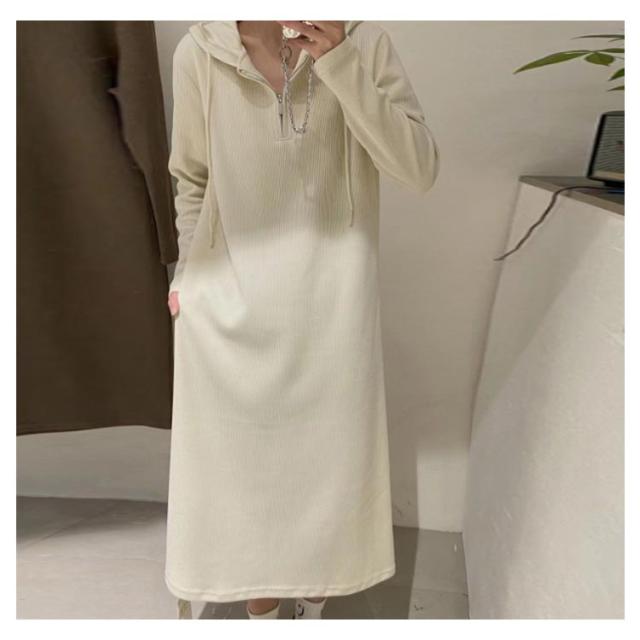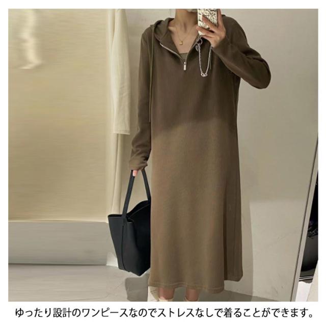 ロングワンピース ワンピース 長袖 ロング丈 フード付き ハーフジップ 秋 ゆったり 春 ハーフジップ 大きいサイズ カジュアル 体型カバー きれいめ おしゃれ L XL 2XL 3XL 4XL