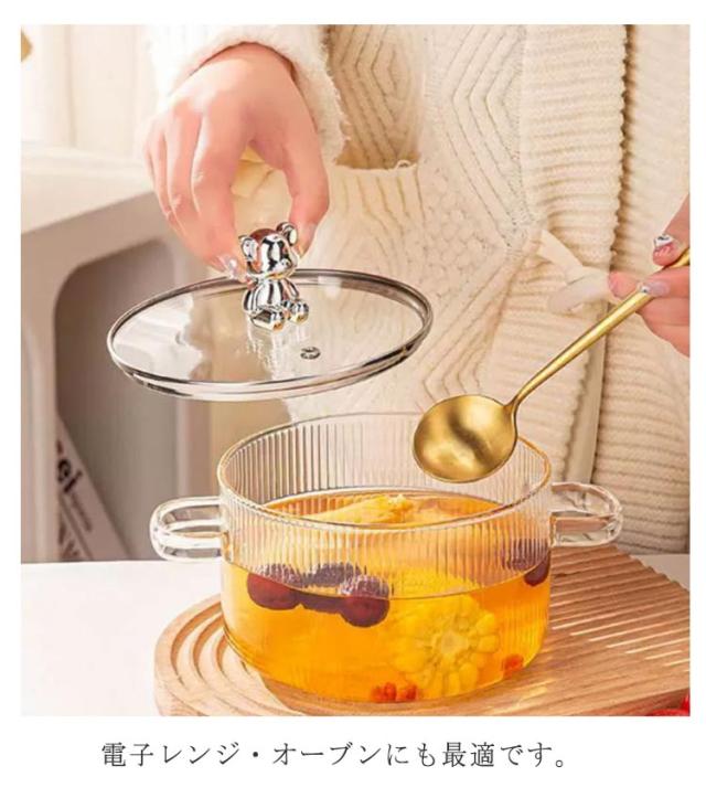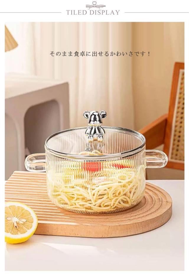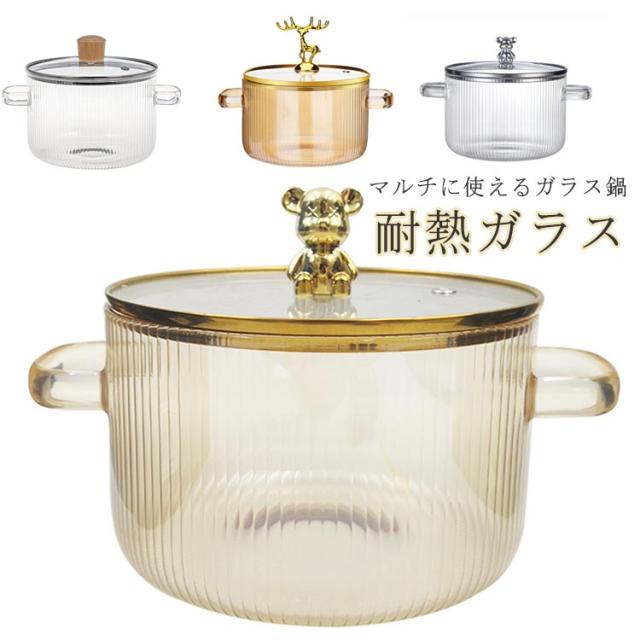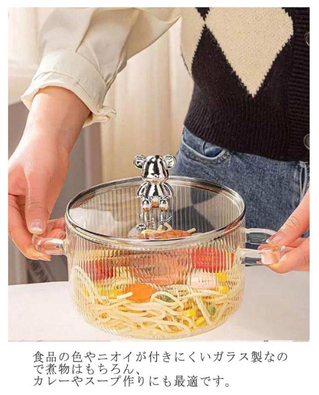 耐熱ガラス クリア ガラス鍋 ガス火専用 透明 ガラス製 (※IH対応不可) 食材が見えるガラス鍋 電子レンジ対応 ガラス蓋 直火 両手鍋