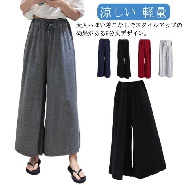 レディース リラックスワイドパンツ フレアパンツ リラックスワイドパンツ 軽量 イージーパンツ ルームウェア 涼しい 無地 きれいめ 旅行 ズボン ゆったり 体型カバー 大きサイズ 春 夏