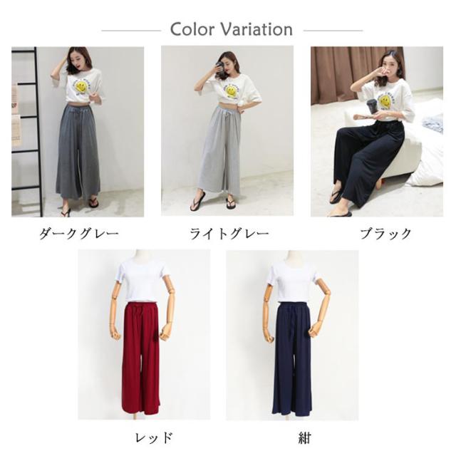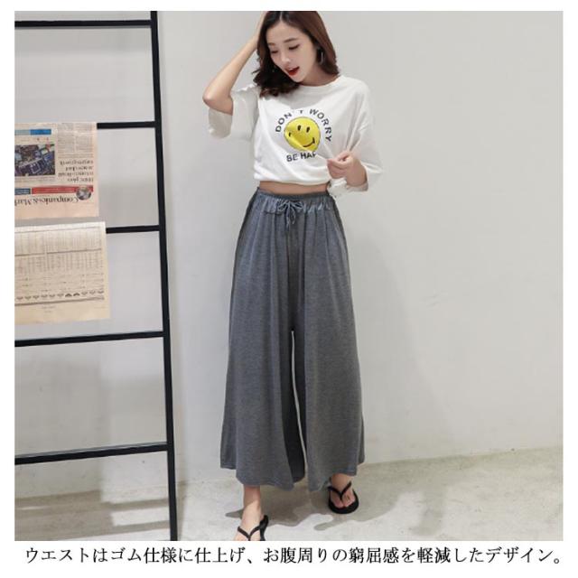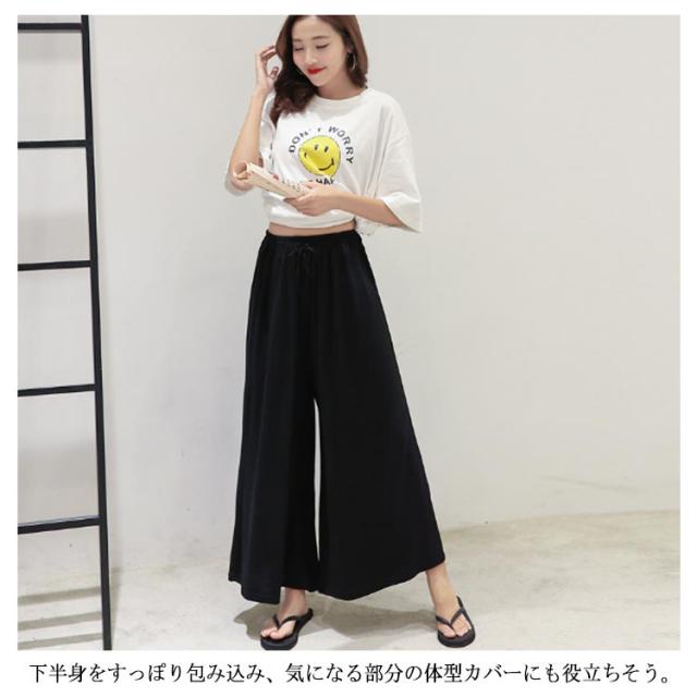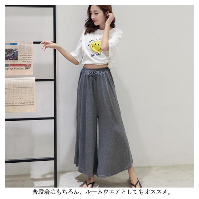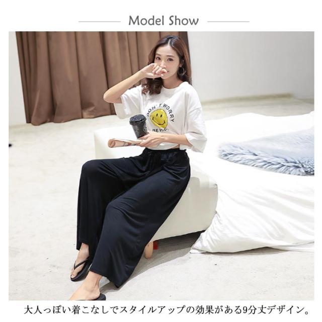 | 滑らかな肌触りとしっとりとした質感でスルッと脚を通し、楽な穿き心地を叶えるゆるパンツ。 大人っぽい着こなしでスタイルアップの効果がある9分丈デザイン。 ボディラインを拾わないワイドシルエットはストレスフリー。 下半身をすっぽり包み込み、気になる部分の体型カバーにも役立ちそう。 ウエストはゴム仕様に仕上げ、お腹周りの窮屈感を軽減したデザイン。 普段着はもちろん、ルームウエアとしてもオススメ。 | |