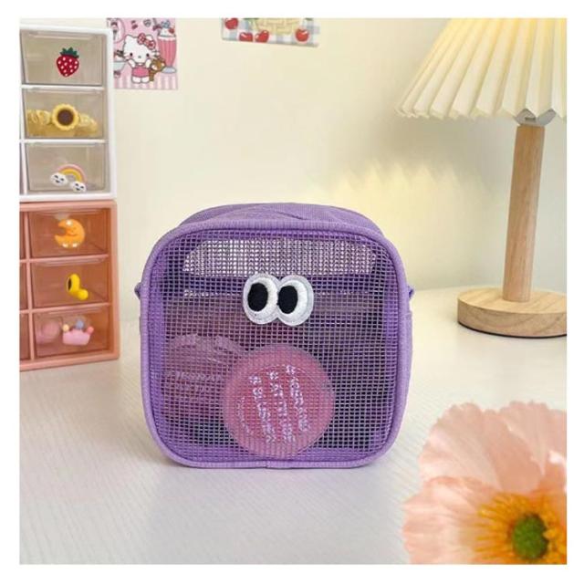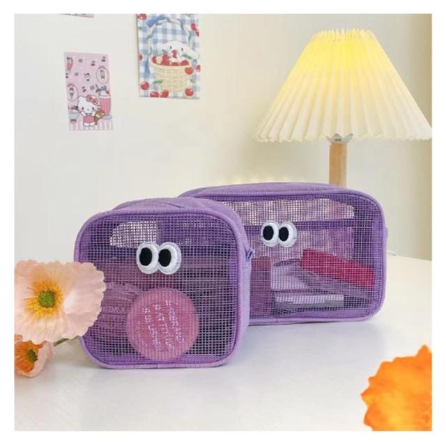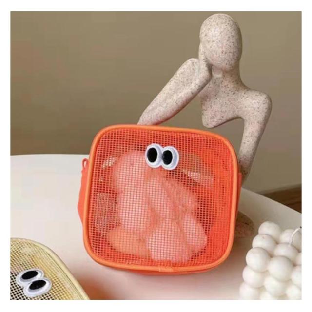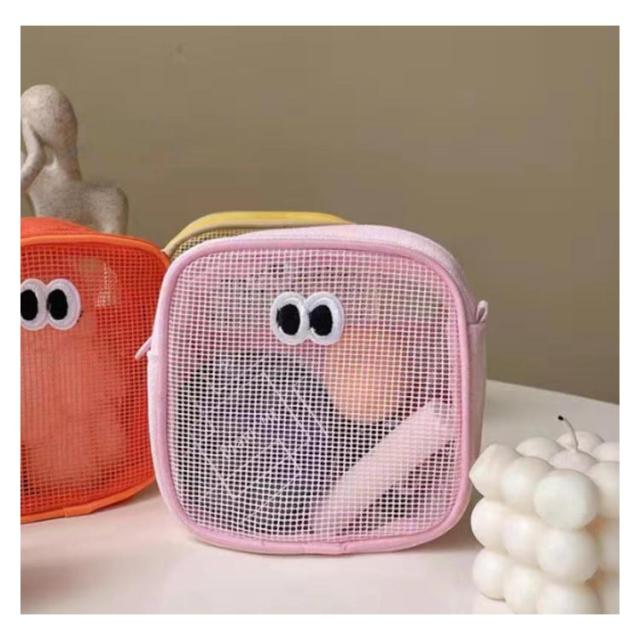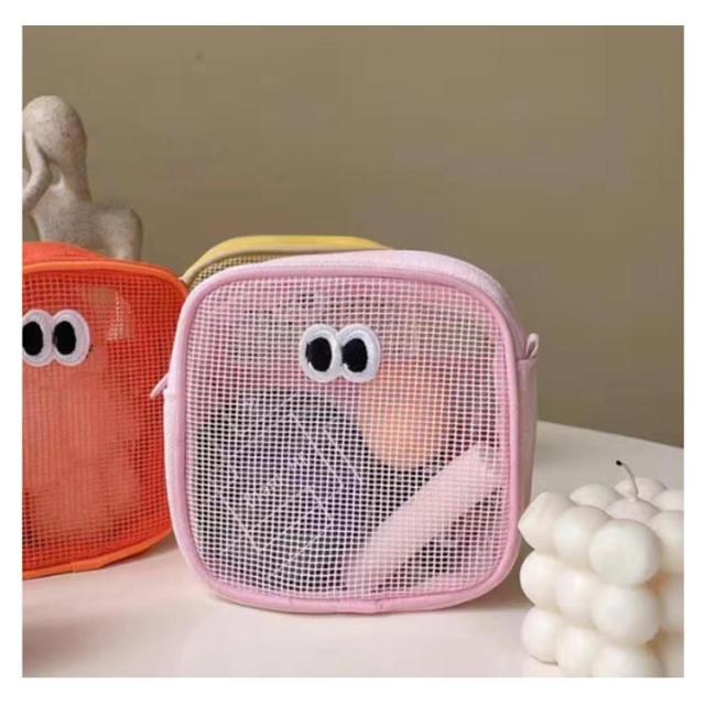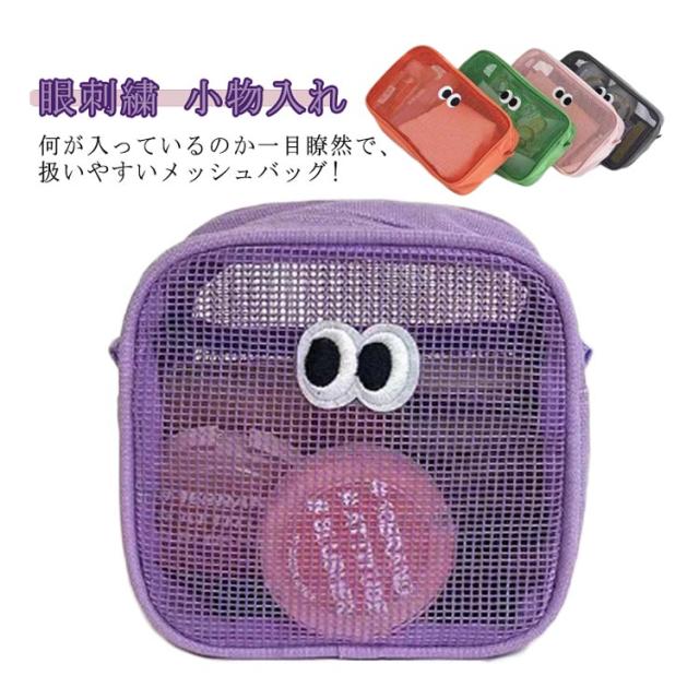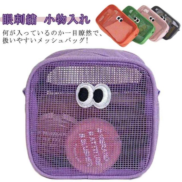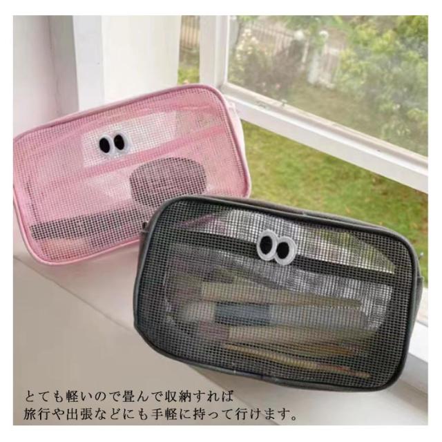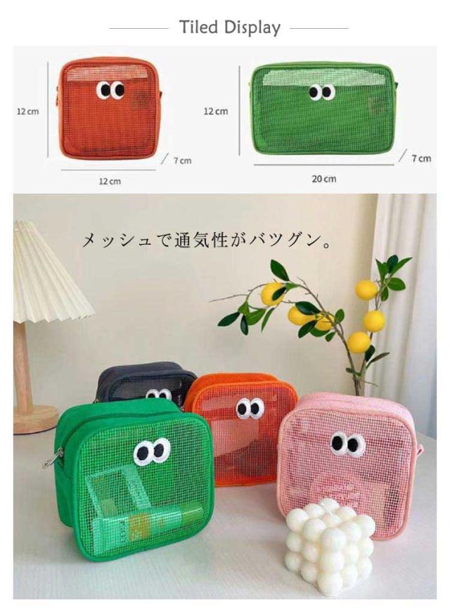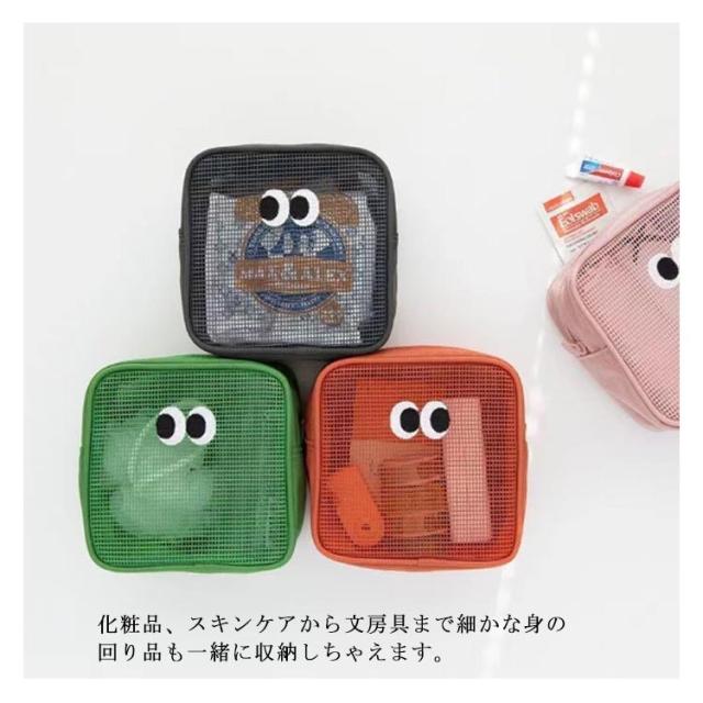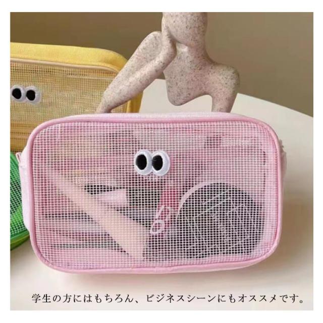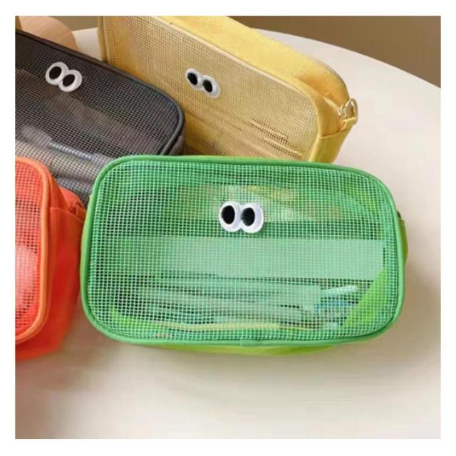 メッシュ ふでばこ プールバッグ 旅行バッグ メッシュバッグ 眼刺繍 コスメバッグ 小物入れ 可愛い 筆箱 男の子 女の子 コスメポーチ