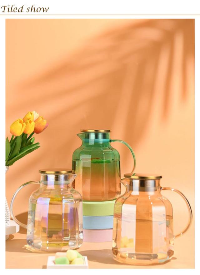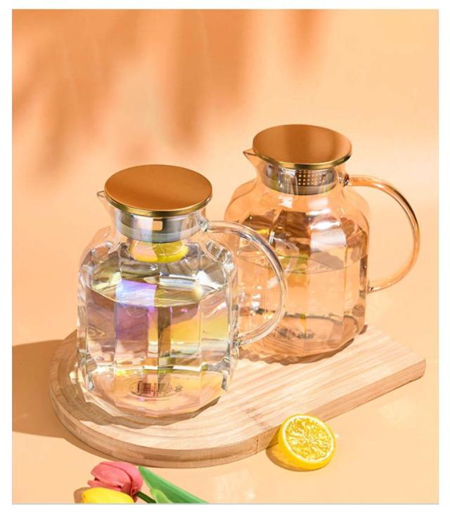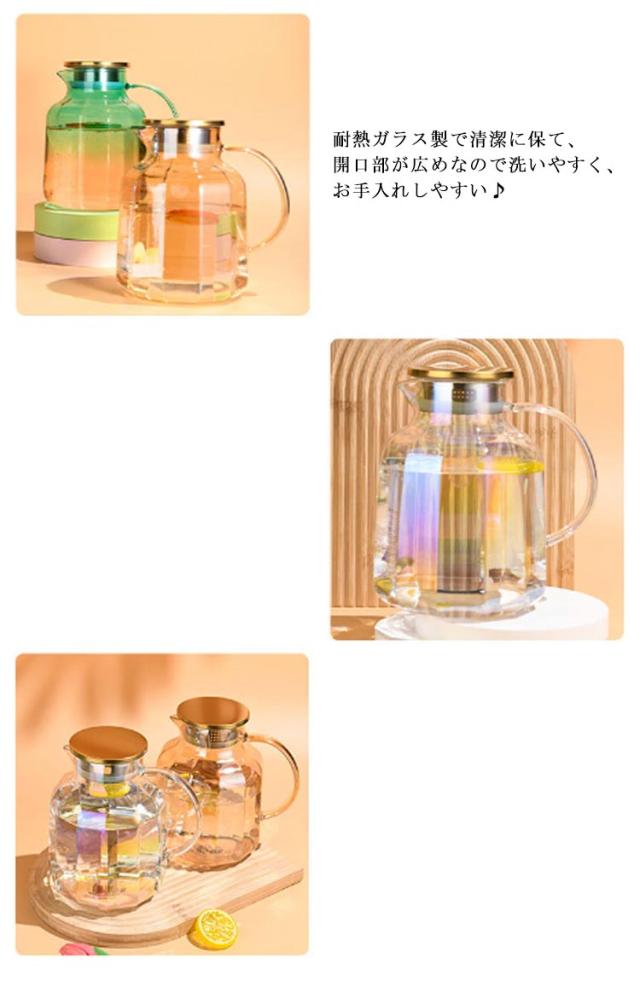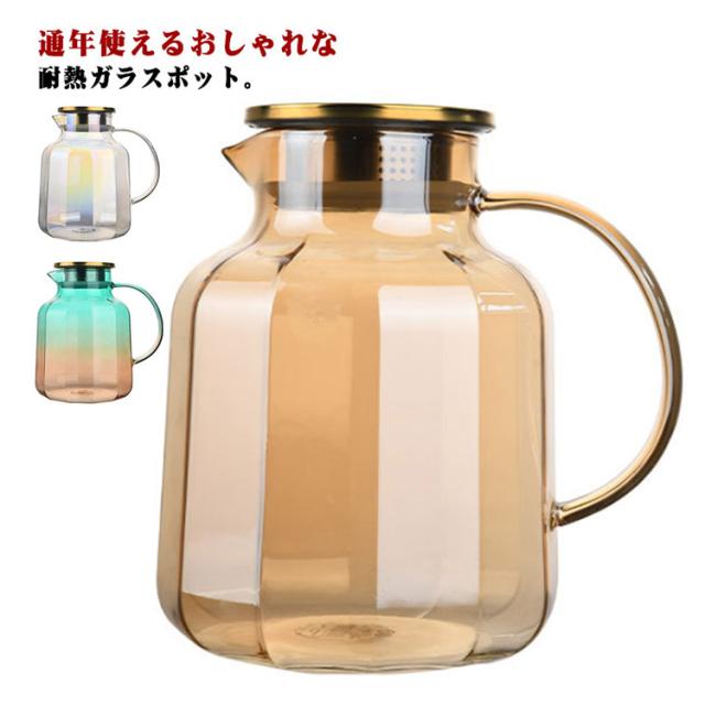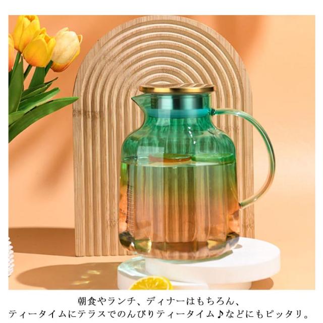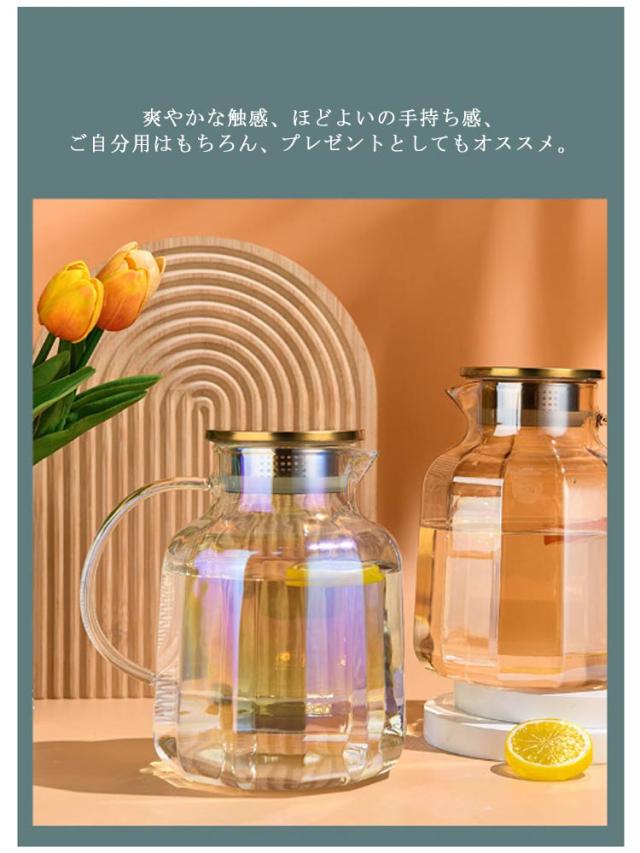 ガラス 麦茶ポット ガラス 冷水筒 蓋付き ピッチャー 麦茶 ウォータージャグ 冷水ポット 耐熱 大容量 水差し 取手ティーポット ポット カフェ風 ピッチャー 洗いやすい おしゃれ キッチン