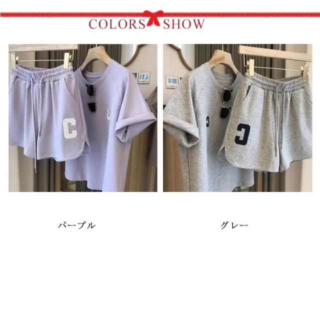 セットアップ おしゃれ カジュアル 半袖 レディース ルームウェア 上下セット ワンマイルウェア 大人 パジャマ ショートパンツ スポーツウェア 体型カバー シンプル 韓国 2点セット ポケット付き 短パン Tシャツ