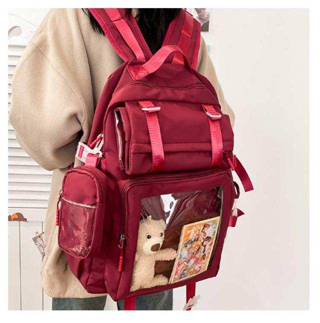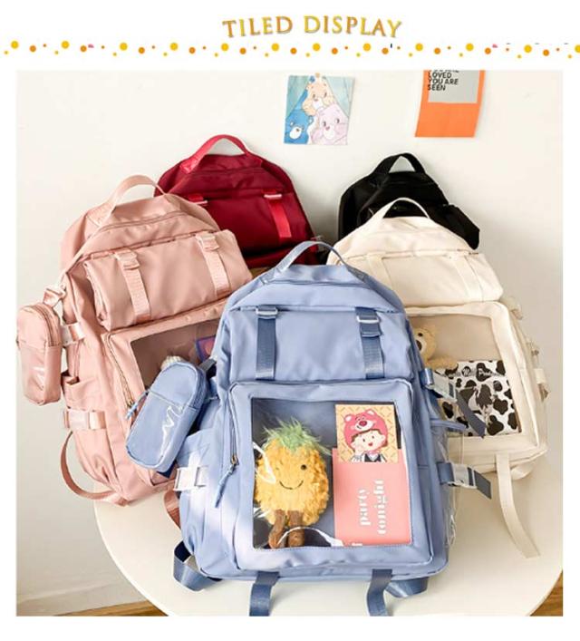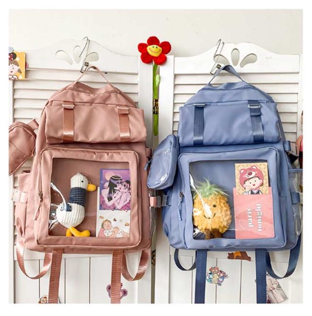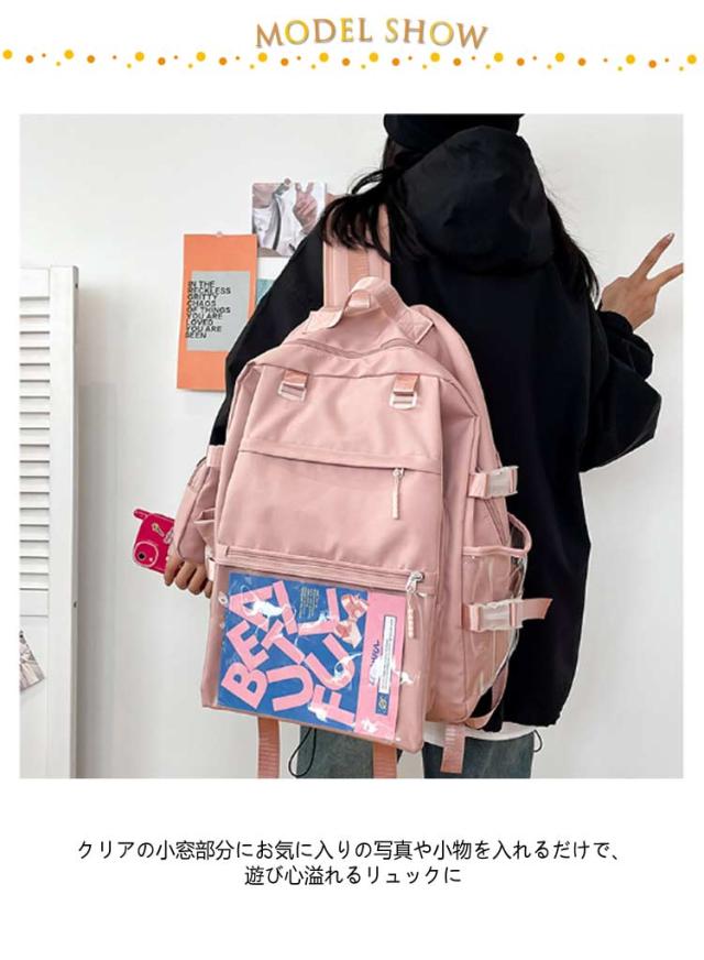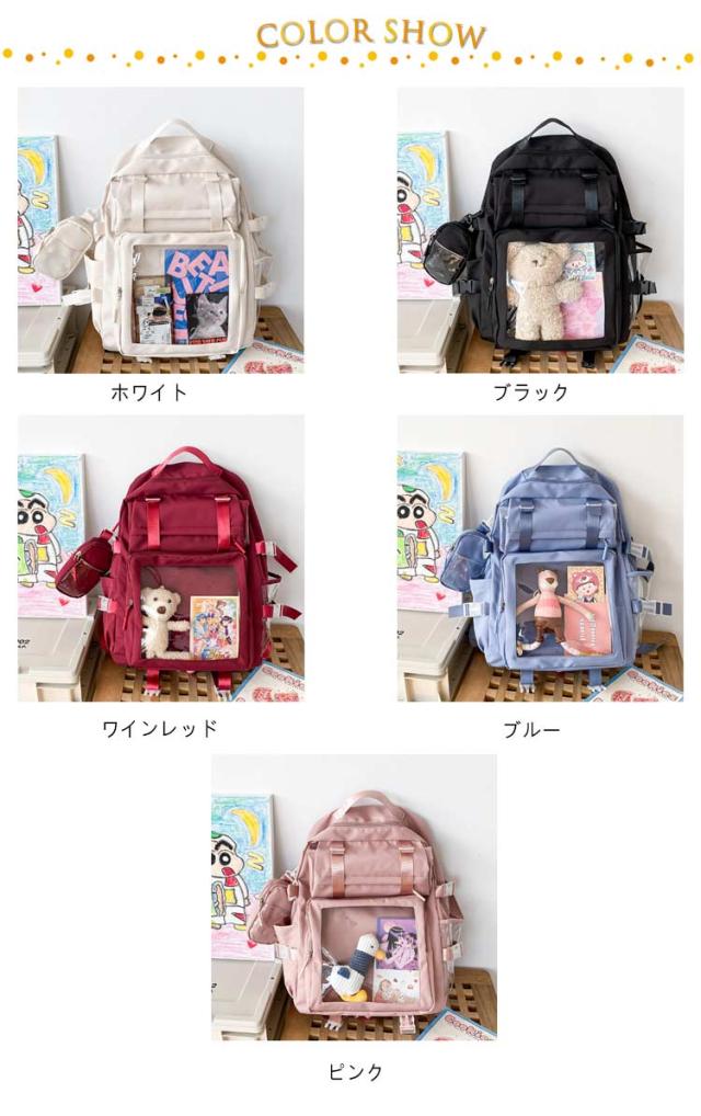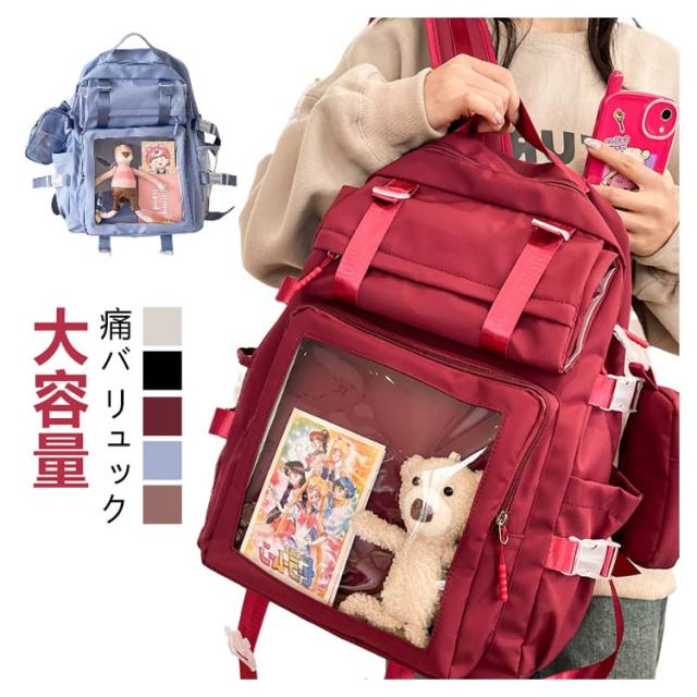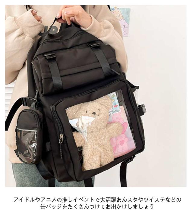 | 痛バ リュック 大容量 クリアの小窓部分にお気に入りの写真や小物を入れるだけで、遊び心溢れるリュックに アイドルやアニメの推しイベントで大活躍あんスタやツイステなどの缶バッジをたくさんつけてお出かけしましょう | |