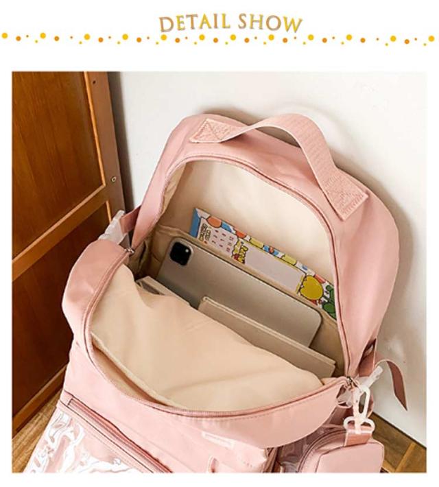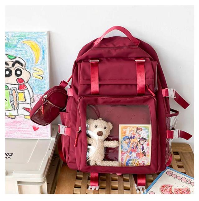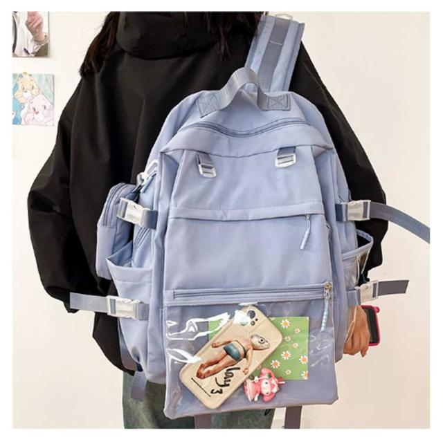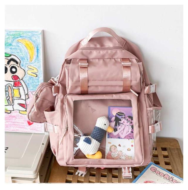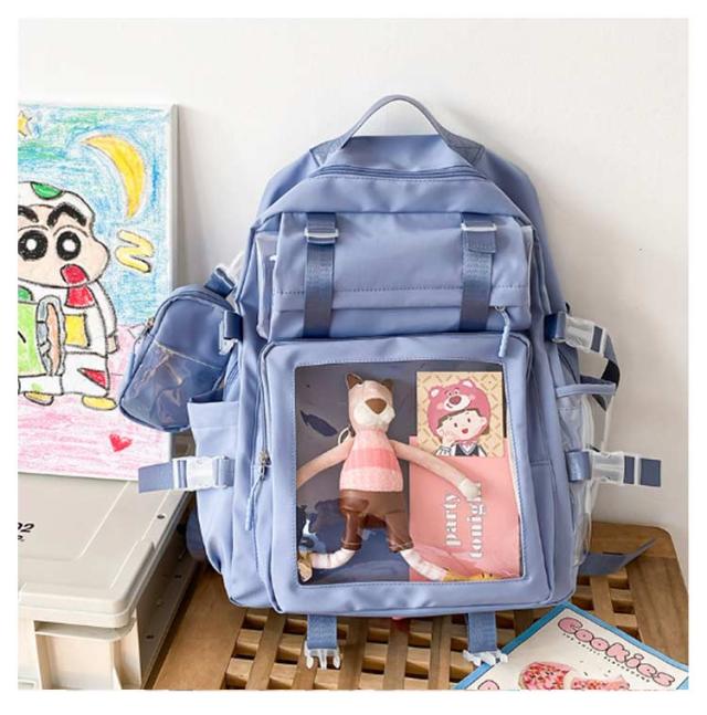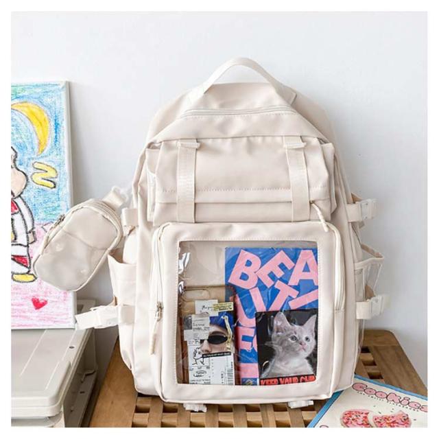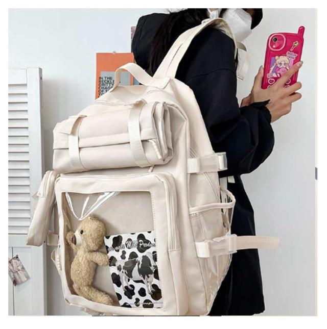 | 痛バ リュック 大容量 クリアの小窓部分にお気に入りの写真や小物を入れるだけで、遊び心溢れるリュックに アイドルやアニメの推しイベントで大活躍あんスタやツイステなどの缶バッジをたくさんつけてお出かけしましょう | |